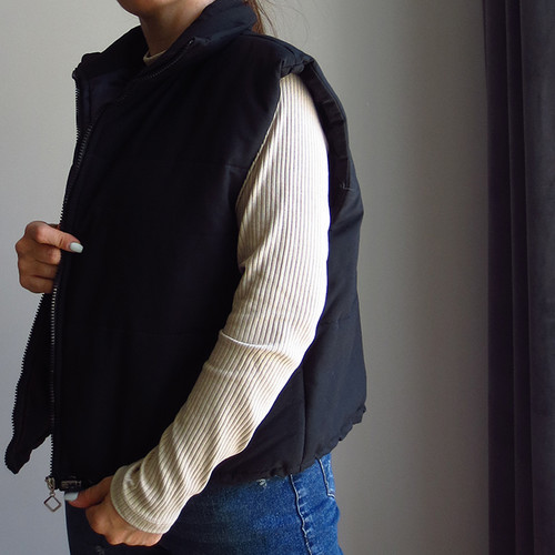 وست کتان زارا شکلاتی (پافر جلیقه)