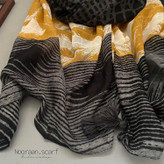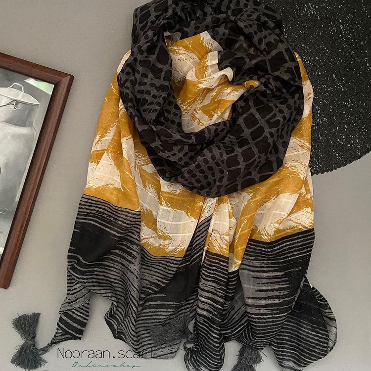 شال نخی تابستانه منگوله دار زرد طوسی 103203