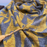 شال نخی منگوله دار زرد-طوسی