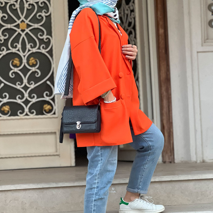 طرح: ساده، 4 دکمه + 1 دکمه مخفی، دو جیب دارد، آستین دوبل